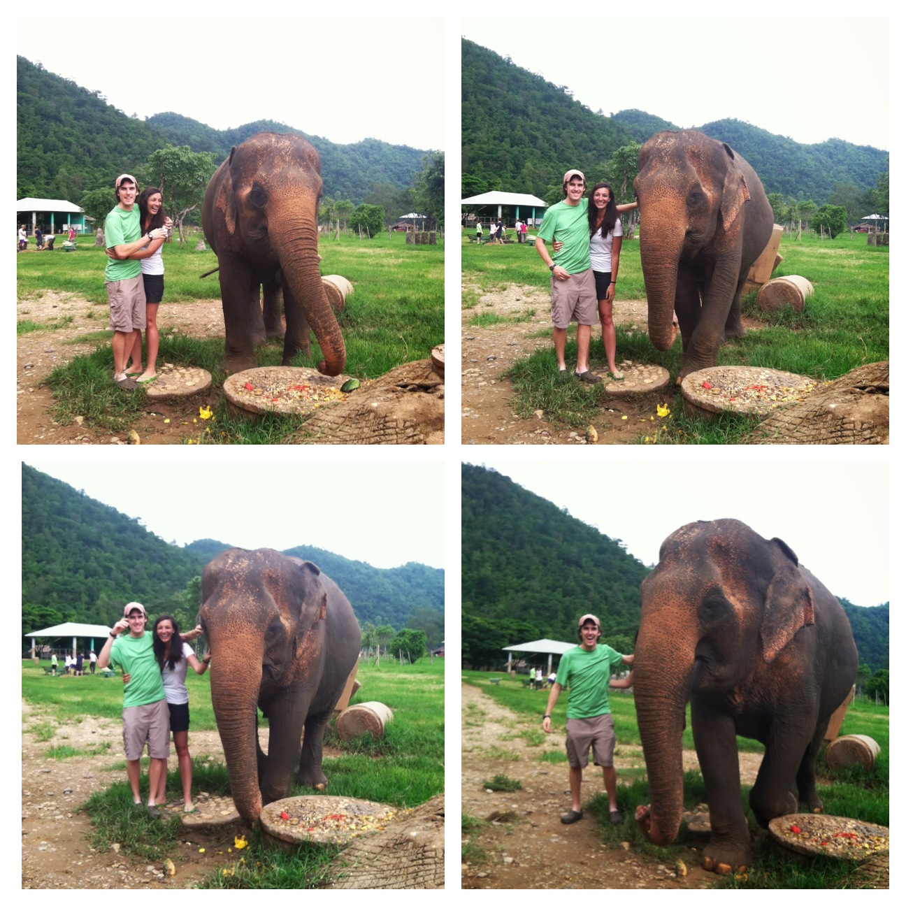 Because these elephants were domestic, they were completely friendly and let us scrub them and pet their trunks. One of our favorite moments happened when we sauntered up to an elephant hoping for a good picture to put on this little bloggy. The elephant turned out to be a bit of a photo hog…