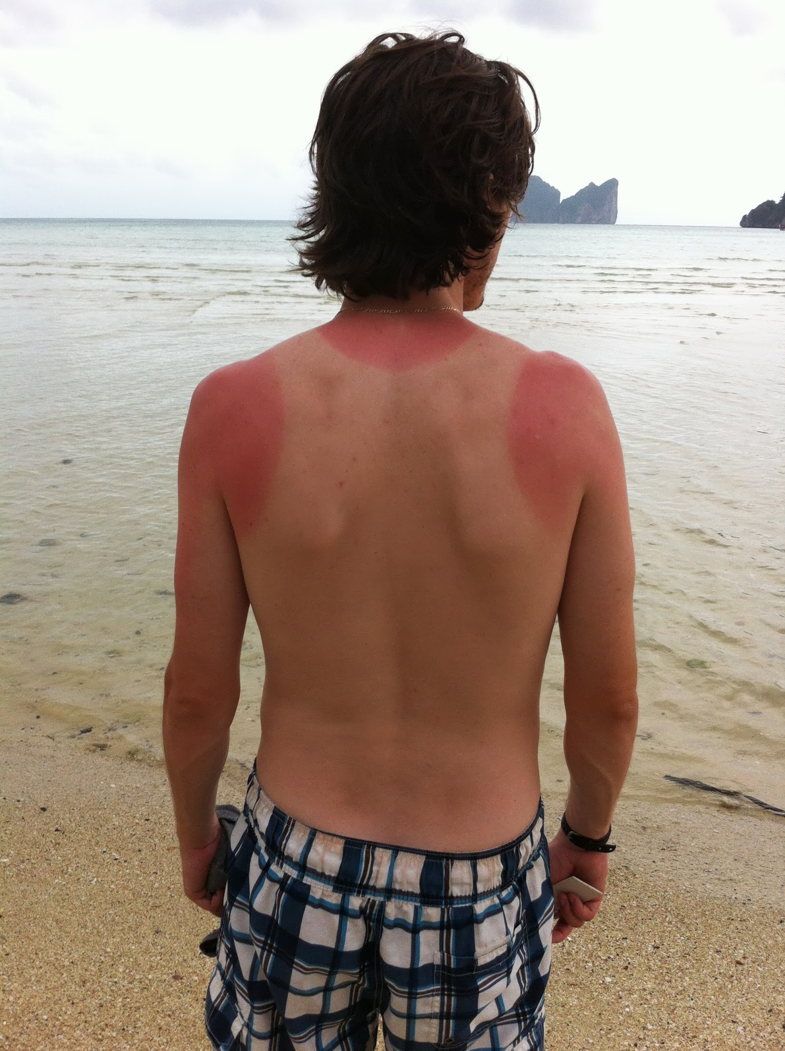 We did spend some time at the beach, but the weather just didn’t feel like cooperating with our plans to return to the States bronzed and beautiful. Most of our sun came from that first morning and our ferry ride to Ko Phi Phi. And this happened to poor Mike: